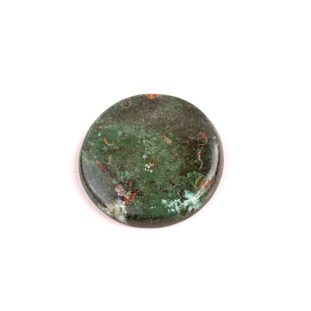 Kabošon z přírodního kamene chrysocolla je nádherným výtvorem přírody, který do vašich šperků vnese hluboký odstín zelené, často s jemnými modrými a tyrkysovými prvky. Chrysocolla je ceněna pro své uklidňující účinky a schopnost přinášet do života klid a harmonii. Tento minerál je známý svým působením na zklidnění emocí a podporu pozitivního myšlení, což z něj je ideální kámen pro meditativní a relaxační účely.
