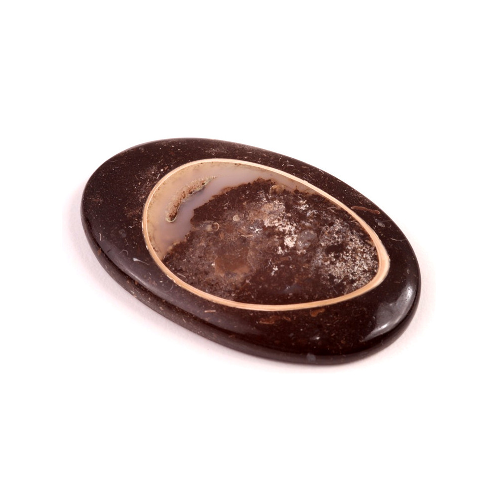 Kabošon můžete obplést drátkem, obšít korálky nebo jej přímo nalepit na šperkový základ. Jeho hladký povrch a organický tvar se skvěle hodí pro různé šperky a bižuterii.