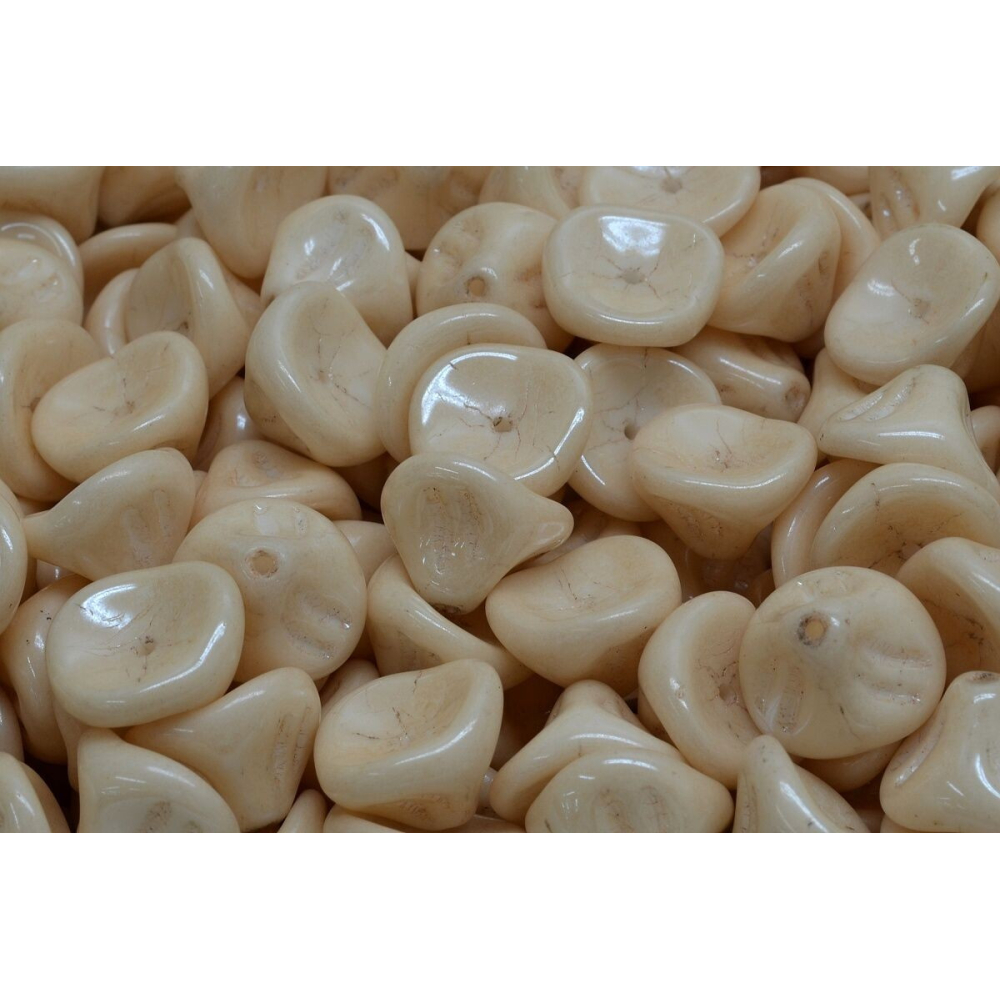 Daylily Flower Beads 10x8 - korálky zvonek WHITE ALABASTER LIGHT BEIGE OPAQUE 02010/14413