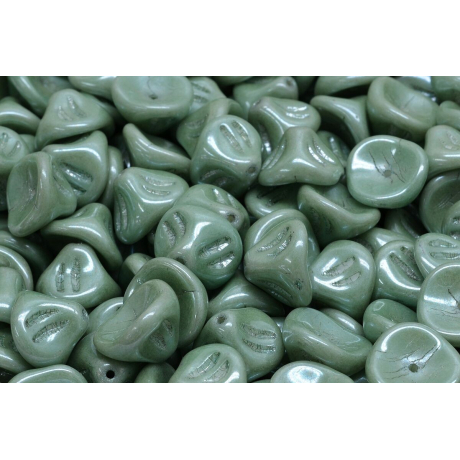 Zelená barva s kódovým označením 02010/14459 připomíná barvu šalvěje a vnáší do bižuterie žádaný přírodní akcent. Tyto skleněné korálky kytičky jsou perfektní volbou pro výrobu jarních a letních náušnic, náhrdelníků nebo jako dekorativní prvek v sutaškové výšivce. Díky neprůhlednému jádru si zachovávají svou barevnou sytost i při dopadu přímého světla, což vynikne zejména v kombinaci s bronzovými nebo matnými kovovými komponenty.