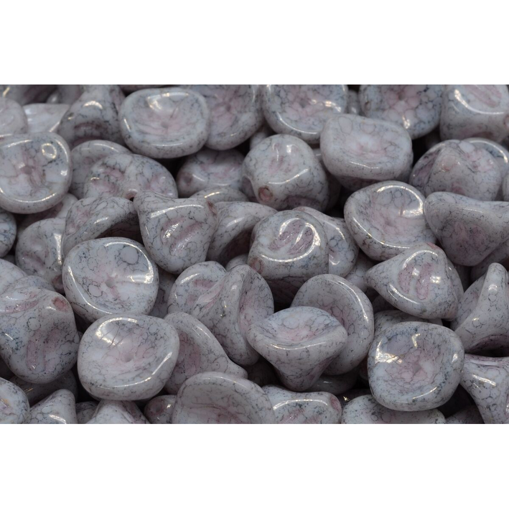 Daylily Flower Beads 10x8 - korálky zvonek WHITE ALABASTER, PICASSO BLUE 02010/65431 Velikost: 10...