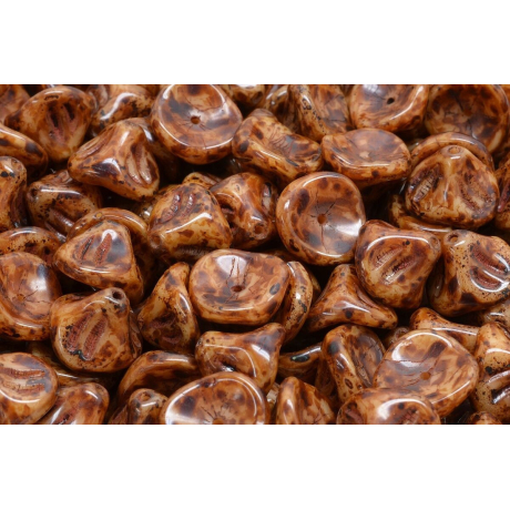 Technika obšívání a kombinace s drobným rokajlem Preciosa ve velikostech 10/0 nebo 8/0 otevírá prostor pro tvorbu prostorových 3D květů. Materiál sklo v neprůhledném provedení s hnědým žíháním dodává výslednému dílu nádech starožitného šperku. Skvěle se hodí pro tvorbu boho stylu, kde hrají prim přírodní tvary a tlumené barevné palety.