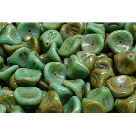 Daylily Flower Beads 10x8 - korálky zvonek TURQUOISE GREEN TRAVERTIN DARK 63130/86805