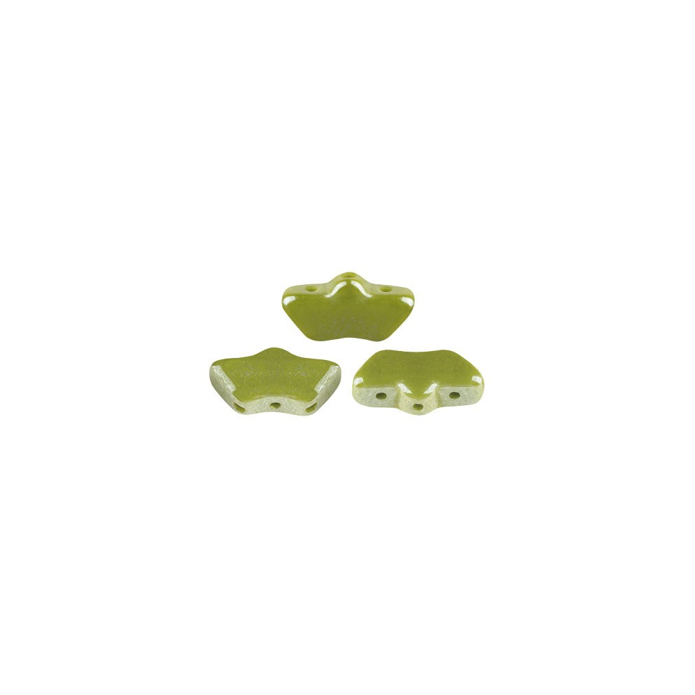 Velikost 6 x 11 mm a precizní třídírkový systém definují tyto unikátní skleněné komponenty, které jsou nezbytné pro komplexní šité šperky. Každý korálek Delos® par Puca® disponuje třemi paralelními otvory o průměru 0,8 mm, což umožňuje vysokou stabilitu v náročných geometrických vzorech a bezpečný vícenásobný průchod nití korálkem bez rizika prasknutí. Povrchová úprava Opaque Green Luster s jemným leskem dodává zelené barvě hloubku a luxusní vzhled, který vynikne v náhrdelnících i náramcích.