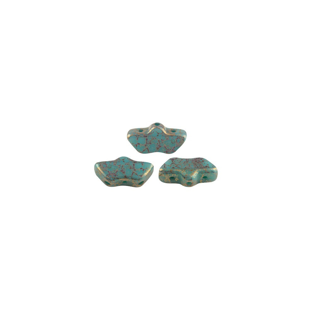 Tyrkysová barva s bronzovým dekorem v odstínu 63130/15496 vychází z bohaté české sklářské tradice, která zajišťuje špičkovou kvalitu mačkaného skla. Design navržený francouzskou návrhářkou Annick Puca v sobě spojuje evropskou eleganci s moderním přístupem k beadweavingu. Každý kus z balení 10 ks prochází přísnou kontrolou, aby byla zajištěna stoprocentní průchodnost všech tří otvorů pro bezchybné navlékání.