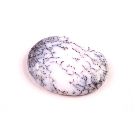 Dendritický opál (Dendrite Opal) je jedinečný kámen s jemnými bílými a šedými tóny, které jsou protkány černými dendritickými inkluzemi připomínajícími větvičky stromů. Tento přírodní vzor dává kameni neopakovatelný a mystický vzhled, což z něj činí oblíbený materiál pro šperkařství.