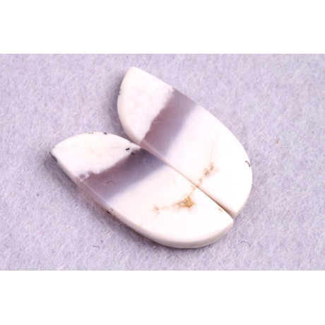 Párové kabošony z přírodního kamene Dendritický Opál jsou ideální volbou pro výrobu náušnic, které se vyznačují přírodní elegancí a jemností. Tyto kabošony byly vyrobeny z jednoho kusu kamene, aby dokonale ladily k sobě a vytvářely harmonický pár. Dendritický opál, s jemnými černými dendritickými vzory na bílém podkladu, připomíná jemné větvičky či přírodní scenérie, což přidává šperkům osobitý a unikátní vzhled.