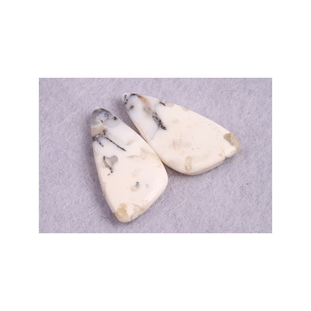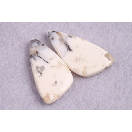 Párové kabošony z přírodního kamene Dendritický Opál jsou ideální volbou pro výrobu náušnic, které se vyznačují přírodní elegancí a jemností. Tyto kabošony byly vyrobeny z jednoho kusu kamene, aby dokonale ladily k sobě a vytvářely harmonický pár. Dendritický opál, s jemnými černými dendritickými vzory na bílém podkladu, připomíná jemné větvičky či přírodní scenérie, což přidává šperkům osobitý a unikátní vzhled.
