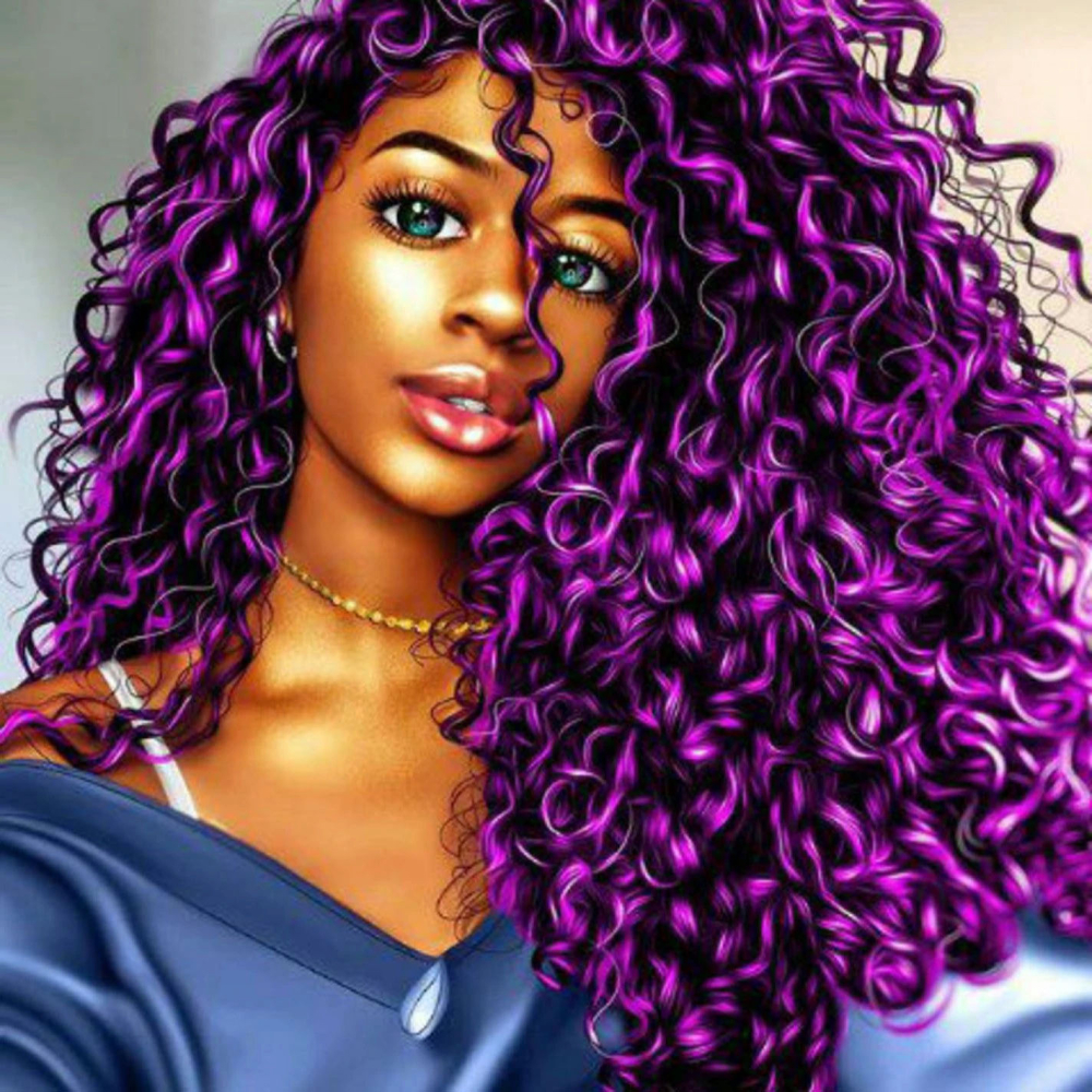 Tento nádherný diamantový obraz představuje ženu s očarujícími fialovými kudrlinkami, které jsou tak živé, že přímo vystupují z plátna. Detaily každé kudrlinky jsou precizně vyjádřeny skrze diamantové kamínky, které dodávají obrazu nejen jiskru, ale i hloubku a texturu. S rozměrem 30x30 cm je tento obraz perfektním projektem pro zkušené umělce i začátečníky v diamantovém malování.
