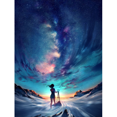 Přineste si domů kousek vesmíru s tímto inspirujícím diamantovým malováním 'Pozorovatelka hvězd'.