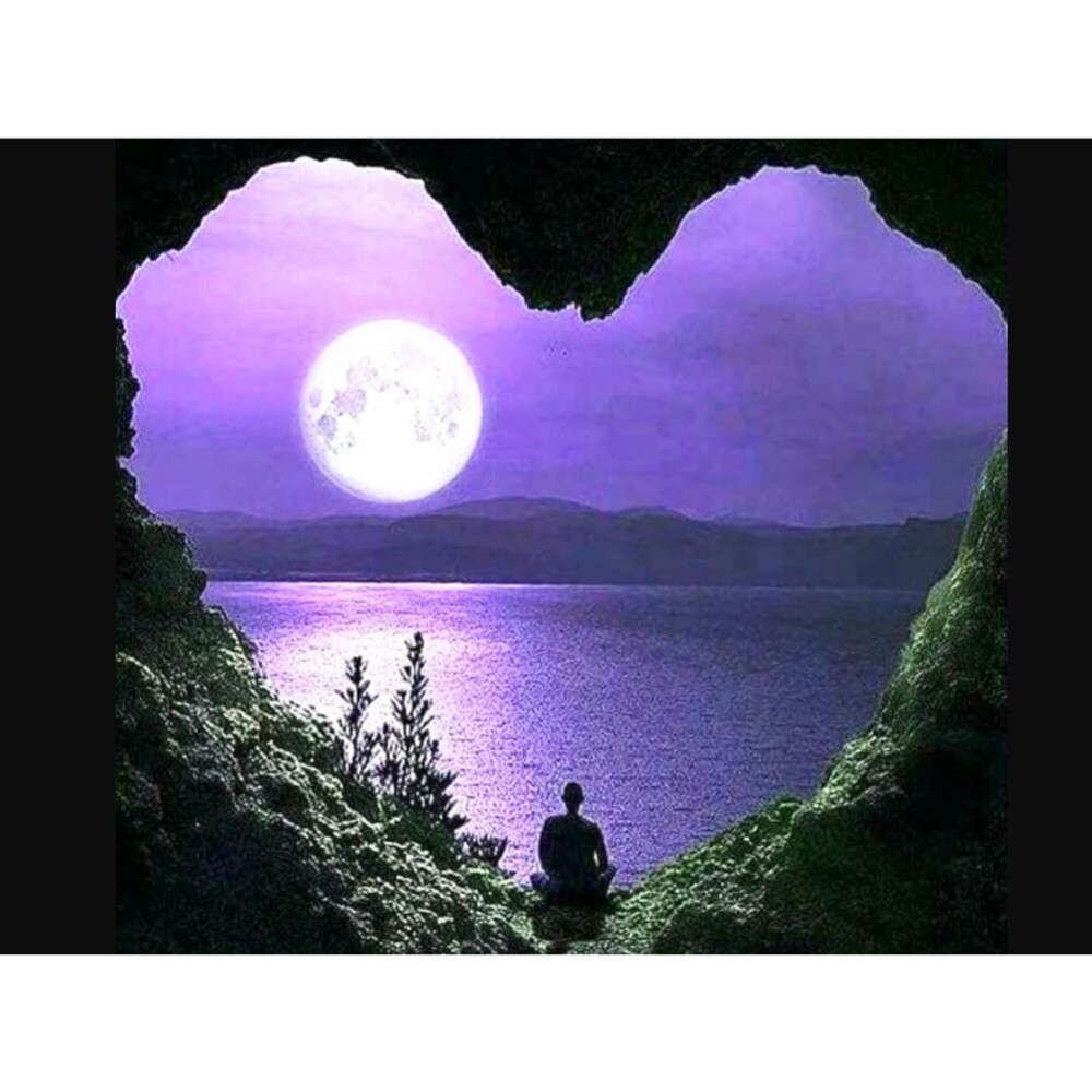 Diamantové malování - Srdce ve skále při úplňku - č. 216 40x30 cm