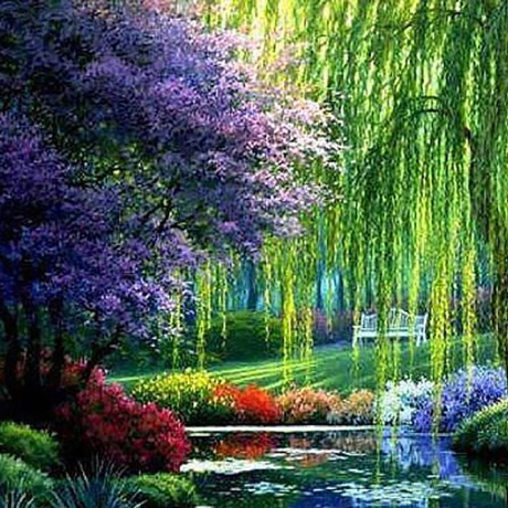 Diamantové malování - Vodopád s růžovými stromy - č. 240...