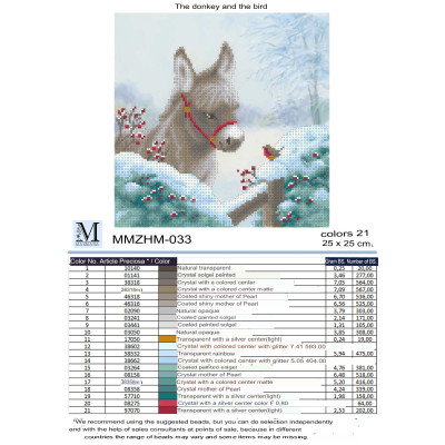 Plátno pro vyšívání korálky Velikost cca 25 x 25 cm Počet barev: 21 Vzor: Zvířata Materiál:...