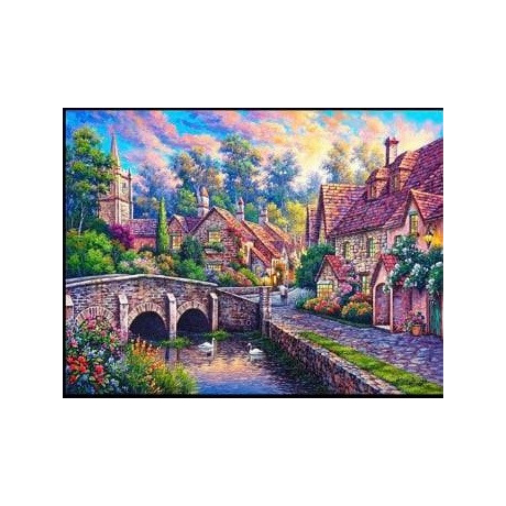 Diamantové malování - Vesnička u kamenného mostu - č. 678 65x85 cm