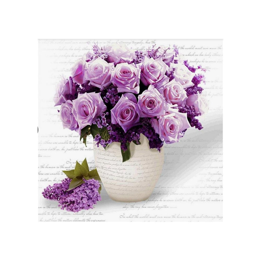 Diamantové malování - Růže v kamenné váze - č. 795 40x50 cm
