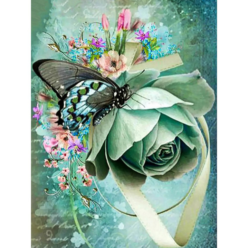 Diamantové malování - Srdce s motýlem a pírka č. 995