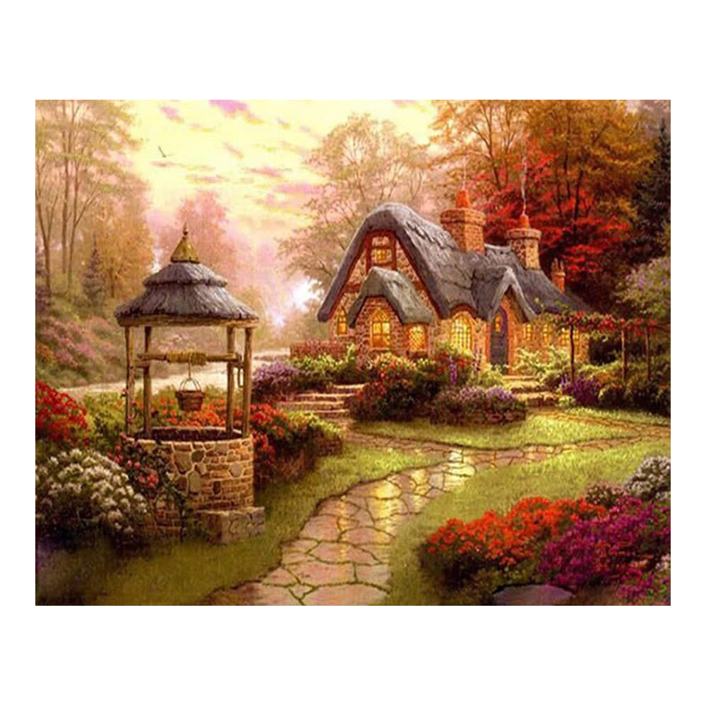Diamantové malování - Chaloupka v rozkvetlé zahradě - č....