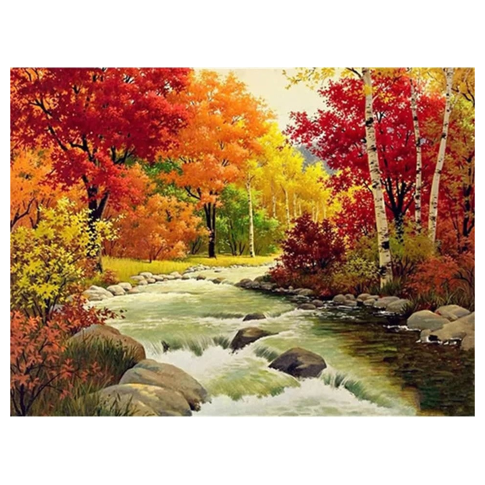 Diamantové malování - Vodopád s červenými stromy - č. 276...