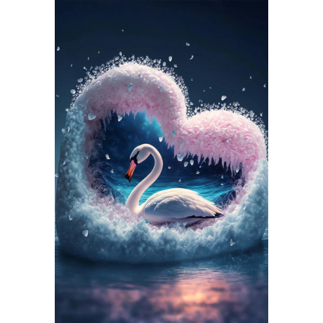 Diamantové malování - Labuť a vlna ve tvaru srdce č. 1041