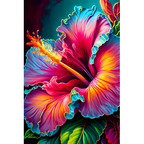 Exotická krása ibišku v diamantovém malování, zářivé barvy pro váš domov.