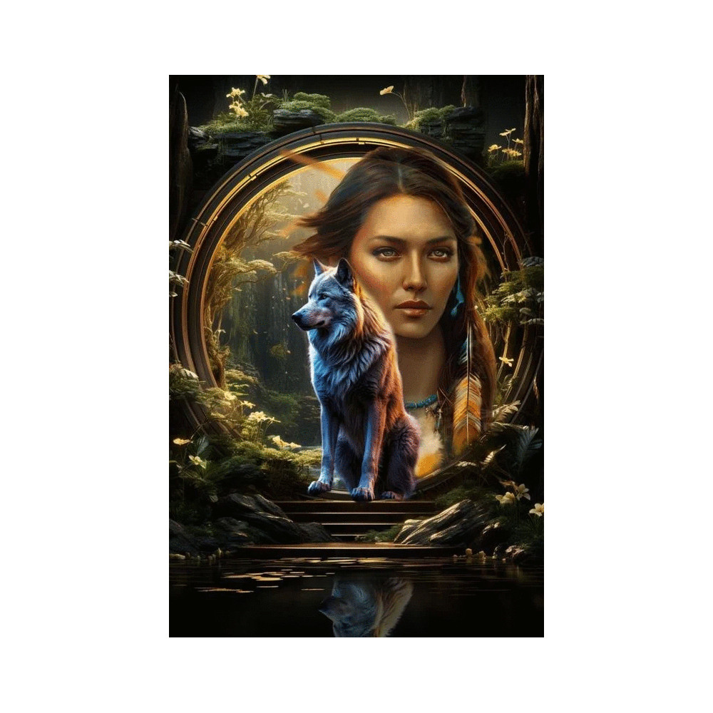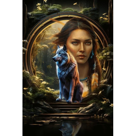 Představte si umělecké dílo, kde se setkává divoká krása přírody s tajemnou energií. Tato sada diamantového malování vás zavede do hlubokého lesa, kde vlk sedí u krásné lesní dívky, jejíž pohled je stejně pronikavý jako instinkt jejího věrného druha. Obrázek je zvýrazněný AB efektem, který dodává každému diamantu mimořádný třpyt a hloubku, tím umocňuje magickou atmosféru díla. Není to jen obyčejná sada pro diamantové malování; je to brána do světa, kde se prolíná lidská duše s duchem divočiny.