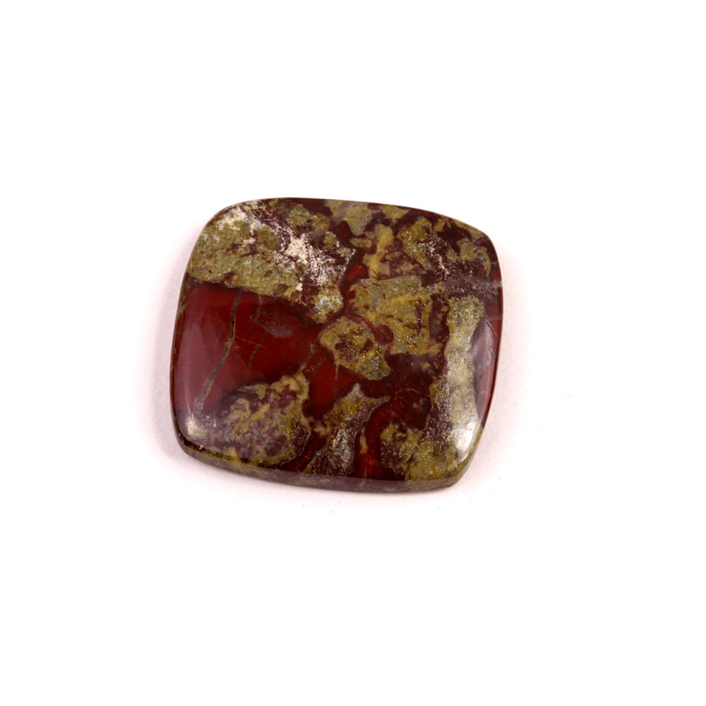 Kabošon z přírodního kamene Dragon Blood Jasper (jaspis dračí krve) vyniká svými jedinečnými odstíny tmavě zelené a rudé, které působí dojmem mystické a tajemné energie. Tento vzácný kámen je ceněný pro svůj neobvyklý vzhled, který připomíná krev draka, a je ideální pro šperky, které mají vyzařovat sílu, odvahu a spojení s přírodou. Dragon Blood Jasper je známý jako kámen vitality a síly, který podporuje odvahu a odhodlanost.