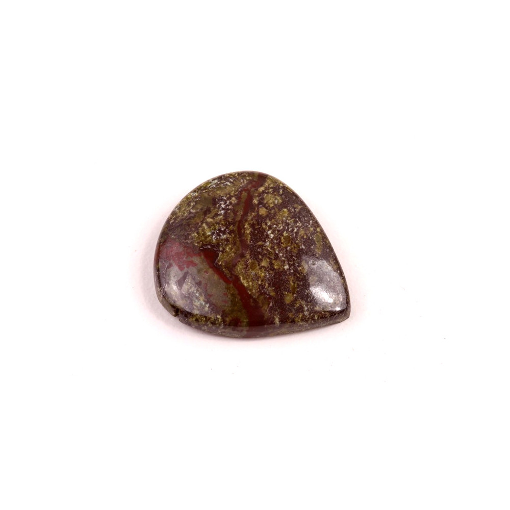 Kabošon z přírodního kamene Dragon Blood Jasper (jaspis dračí krve) vyniká svými jedinečnými odstíny tmavě zelené a rudé, které působí dojmem mystické a tajemné energie. Tento vzácný kámen je ceněný pro svůj neobvyklý vzhled, který připomíná krev draka, a je ideální pro šperky, které mají vyzařovat sílu, odvahu a spojení s přírodou. Dragon Blood Jasper je známý jako kámen vitality a síly, který podporuje odvahu a odhodlanost.