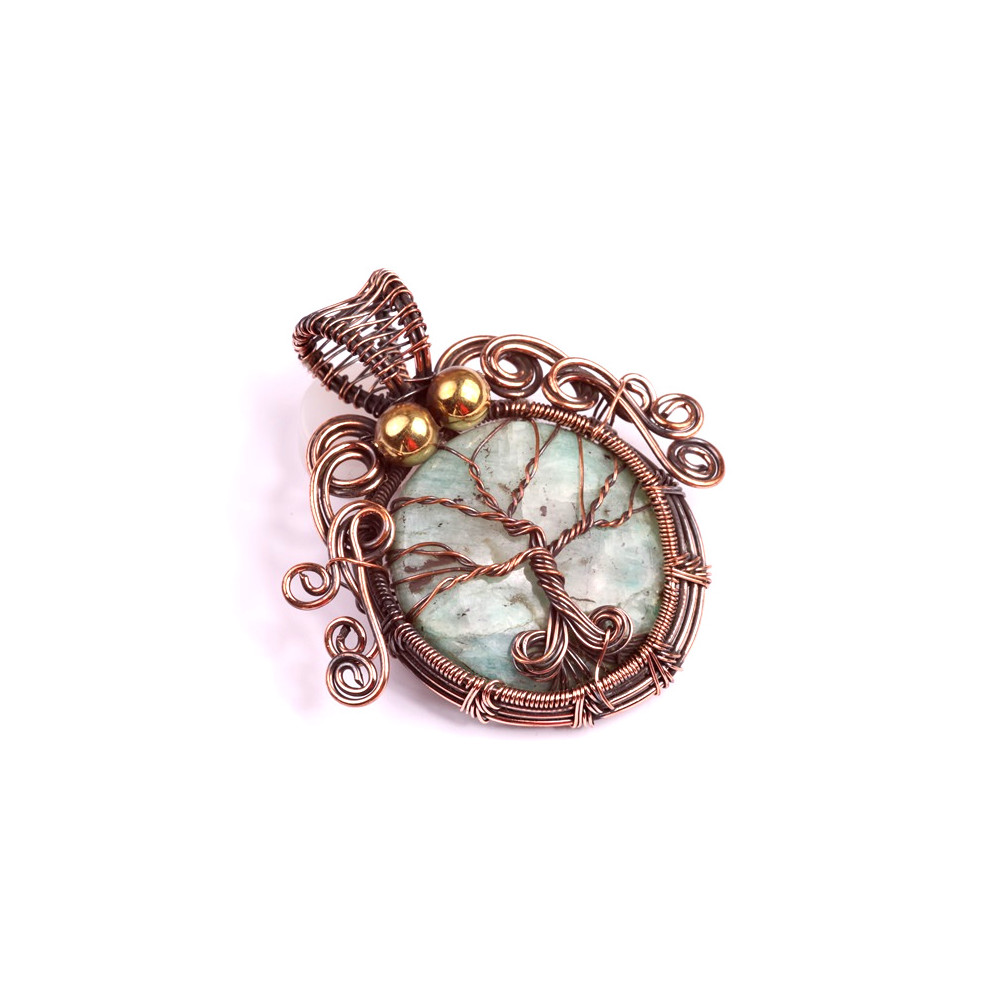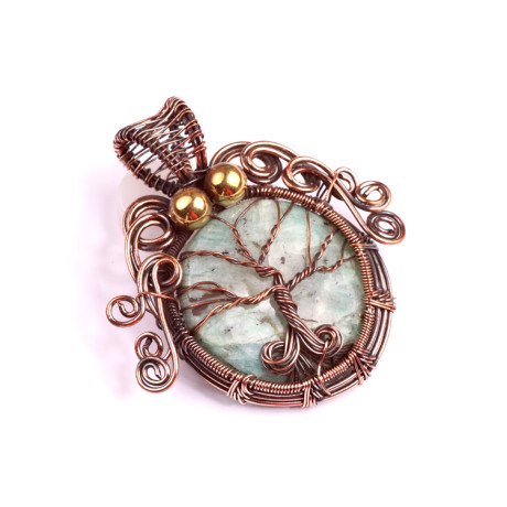 Drátovaný přívěsek strom života s Amazonitem