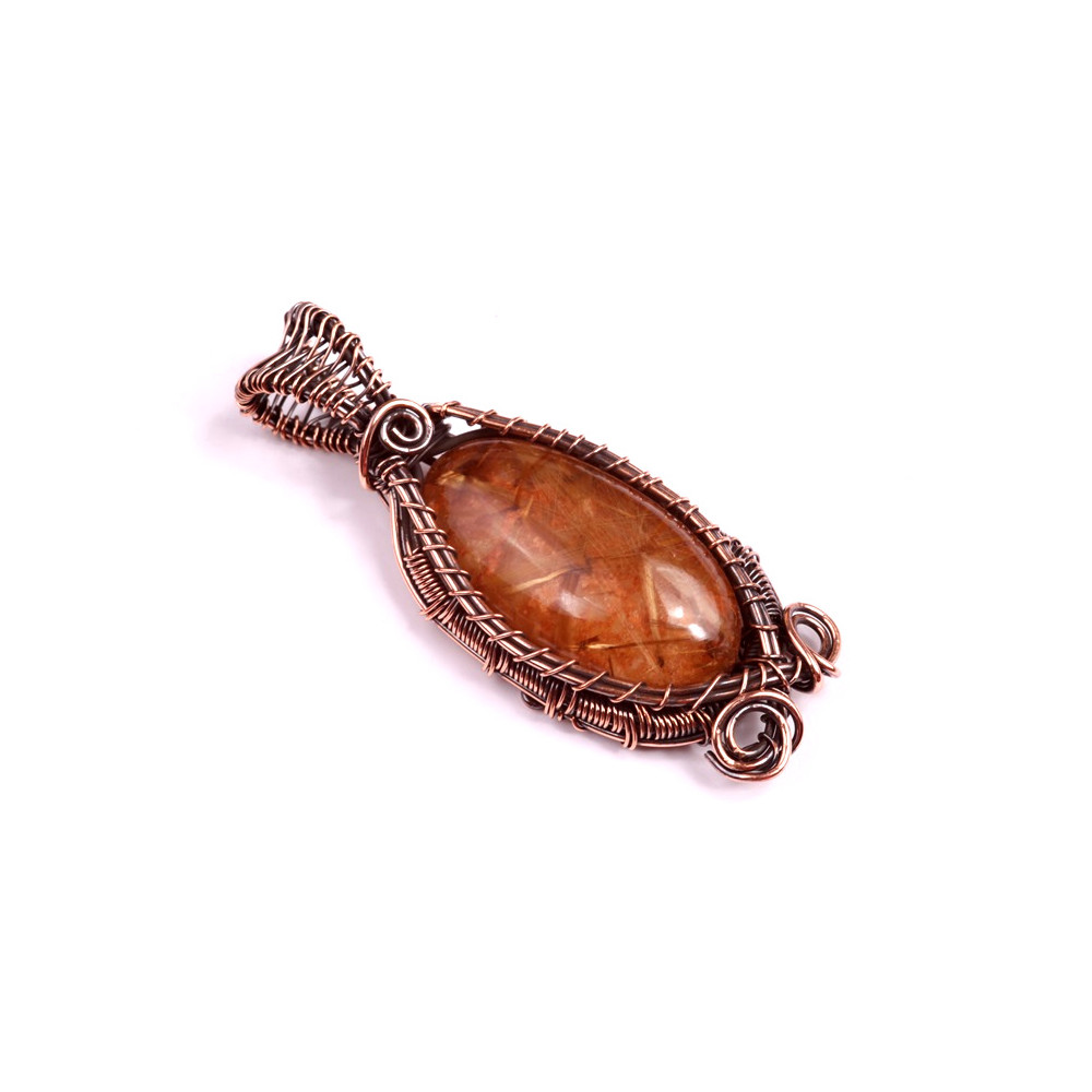 Drátovaný přívěsek s minerálním kamenem Golden Rutile