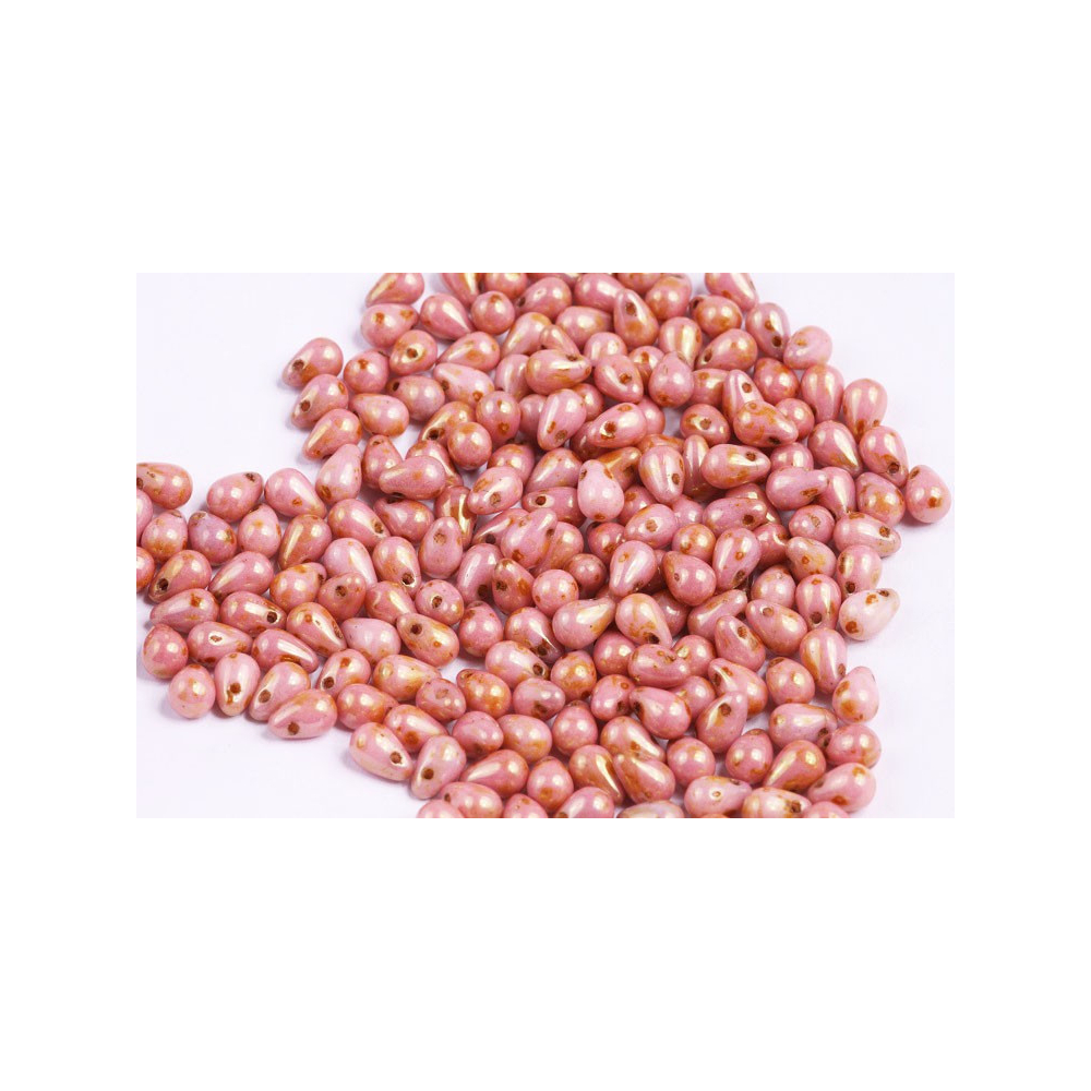 Drop Beads 4x6 - kapky Velikost 4x6 mm Velikost průtahu: 0,8 mm Balení: 40 ks Barva: OPAL PINK...