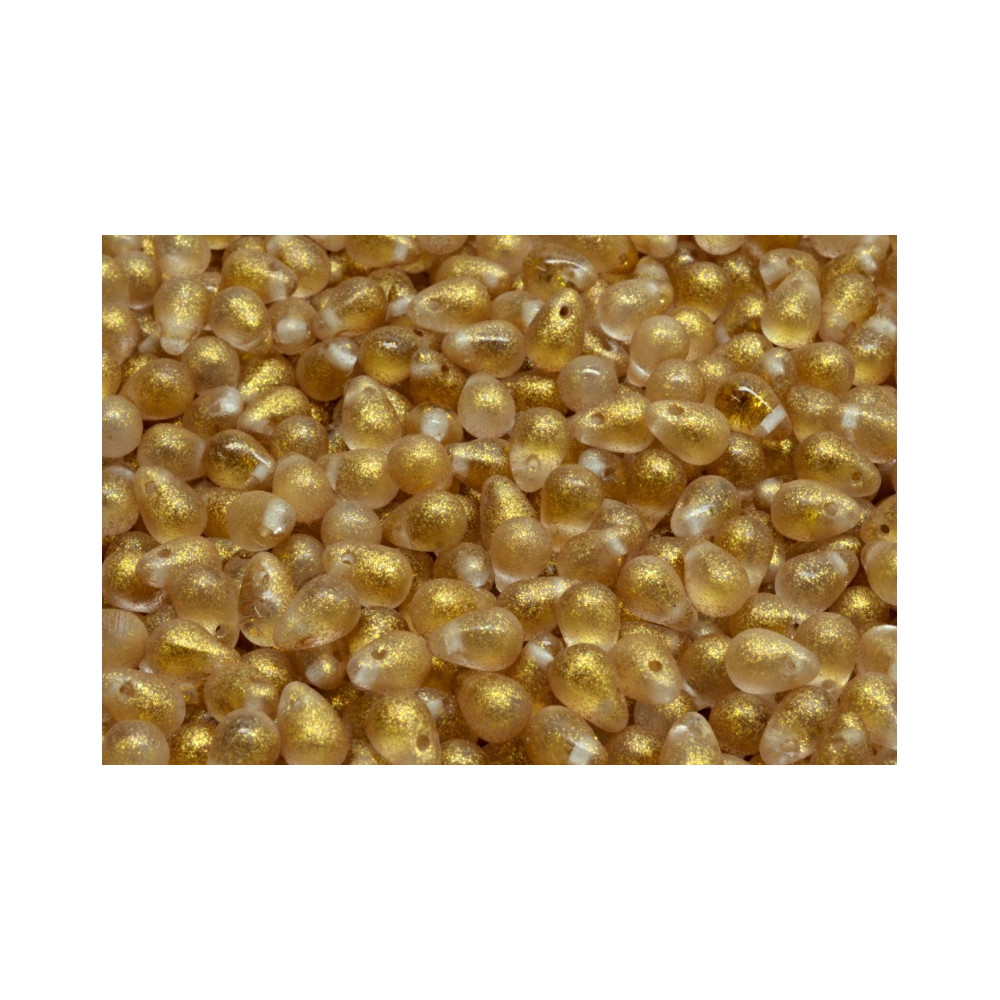 Drop Beads 4x6 - kapky Velikost 4x6 mm Velikost průtahu: 0,8 mm Balení: 40 ks Barva: GOLD SHINE...