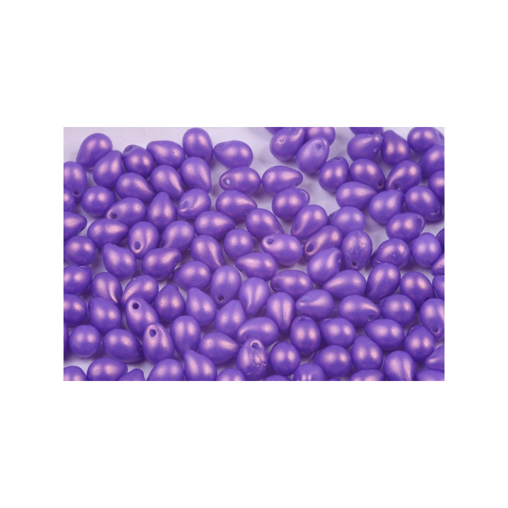 Tento balíček obsahuje 25 skleněných korálků o rozměrech 5 x 7 mm, s průtahem o velikosti 0,8 mm, který prochází zúženou částí kapky. Umístění dírky umožňuje snadné navlékání a vytváří elegantní linie ve vašich výtvorech.