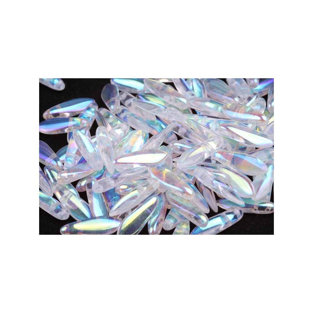 České skleněné korálky jazýčky 5 x 16 mm Průtah: 0,7 mm Balení: 20 ks Barva: Opale Acquamarina...
