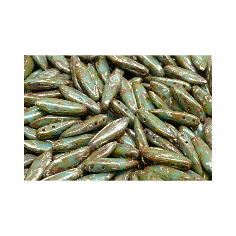 Skleněné mačkané korálky Lipsi® par Puca® - Paris 7 x 4 mm OPAQUE GREEN TURQUOISE SPLASH...