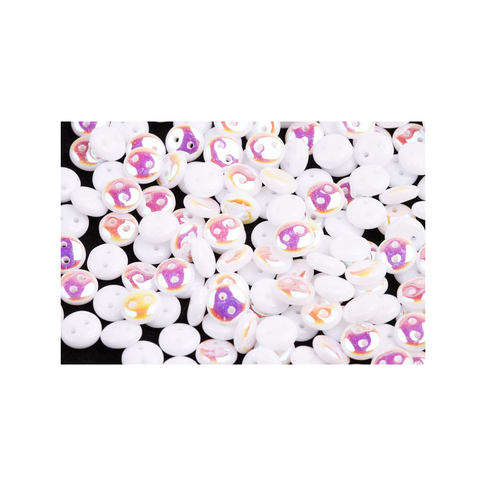 Objevte DuoLentil, skleněné dvoudírkové korálky s elegantním plochým kulatým tvarem a jemně zaoblenými okraji. Jejich průměr 6 mm a dva průtahy o velikosti 0,9 mm umožňují široké využití v různých typech šperků – od minimalistických designů až po propracované víceřadé kompozice. Vyrobeny v České republice, nabízejí tradiční kvalitu, precizní zpracování a jedinečný vzhled.