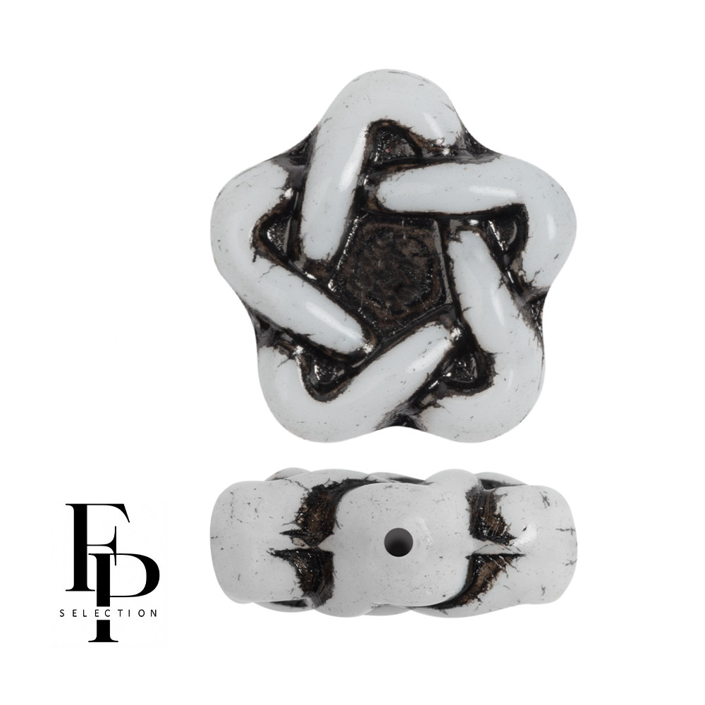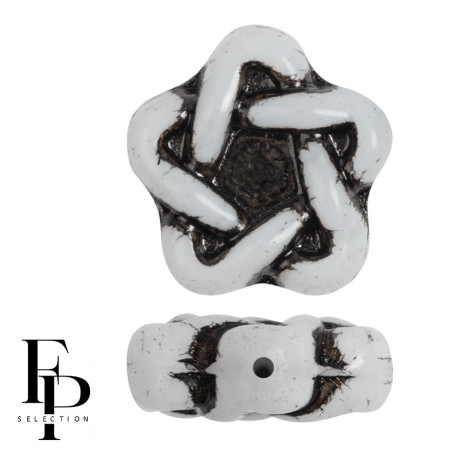 Bílá barva s kontrastní tmavou patinou v rýhách definuje tyto unikátní skleněné korálky Elegant Star. Tento tvar pěticípé hvězdy s proplétaným reliéfem přináší do tvorby šperků dynamiku a hloubku, kterou u plochých korálků nenajdete. Oproti běžným hladkým tvarům vyniká tento model svou rustikální texturou, která připomíná starožitné artefakty a dodává výslednému šperku nádech historie a ruční práce.