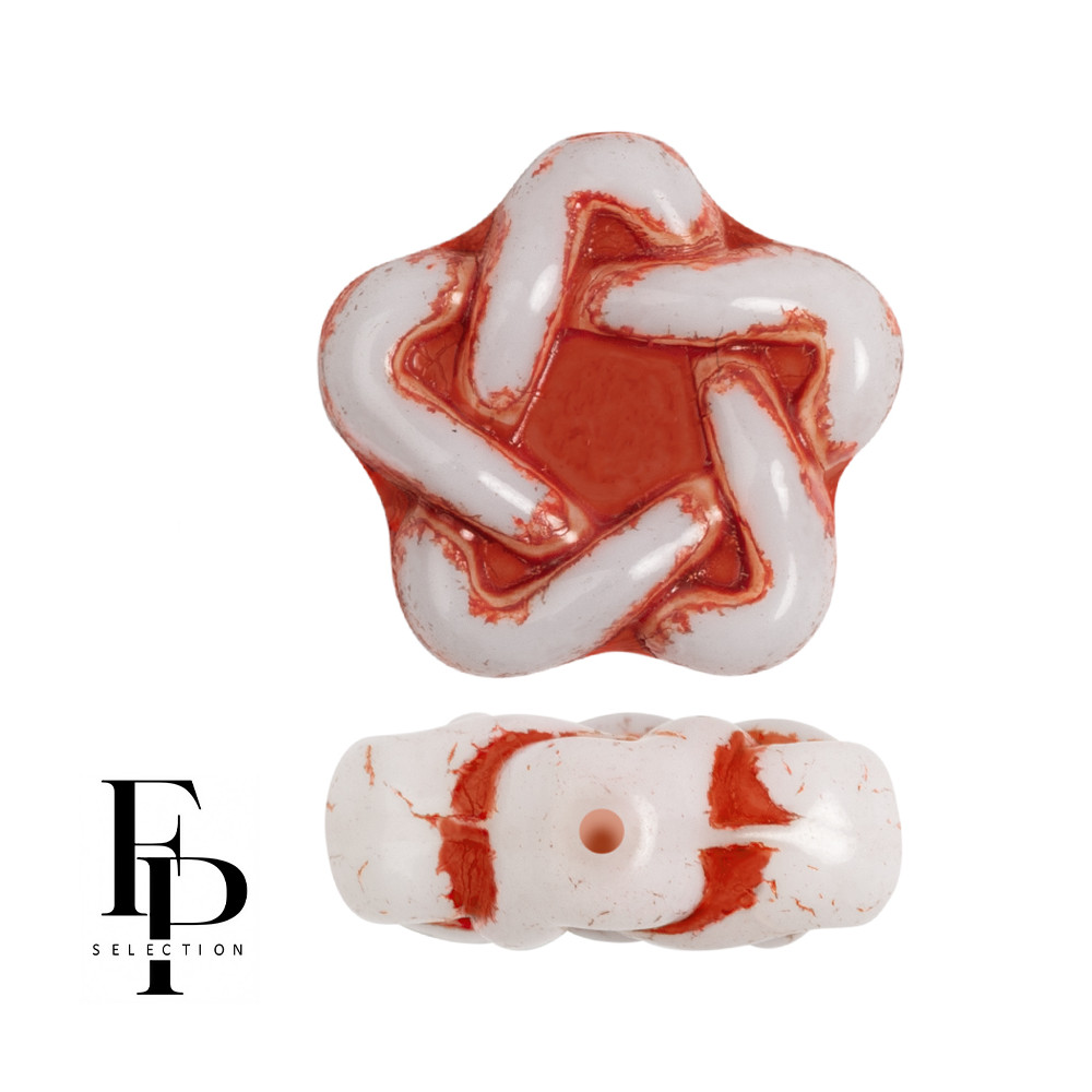 Terakotová patina na mléčně bílém podkladu vdechuje těmto korálkům Elegant Star FP Selection® nezaměnitelný charakter starožitných artefaktů. Každá hvězda má díky ručnímu procesu barvení unikátní kresbu, která nejlépe vynikne v projektech laděných do etno stylu nebo populárního boho chic designu. Velikost 12 x 13 mm je ideální pro tvorbu výrazných náušnic, kde korálek hraje hlavní roli a přitahuje pozornost k obličeji.