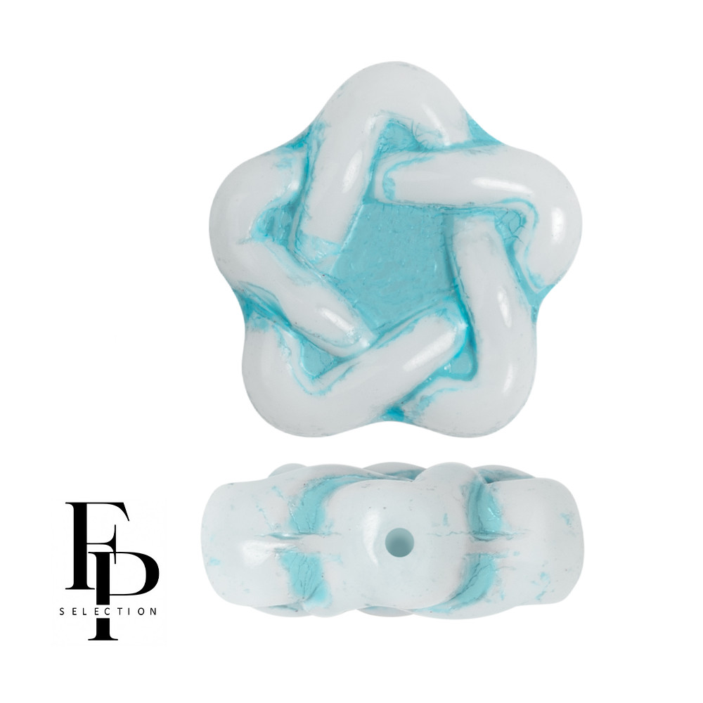 Tyrkysová patina na bílém podkladu dodává těmto skleněným korálkům Elegant Star nezaměnitelný vintage nádech, který je odlišuje od běžných jednobarevných hvězdiček. Na rozdíl od strojově broušených tvarů působí tato česká mačkaná hvězda o rozměru 12 x 13 mm organickým dojmem, čehož je dosaženo speciální povrchovou úpravou v prohlubních reliéfu. Tento efekt zvýrazňuje propletený motiv hvězdy a dodává hotovému šperku hloubku a texturu, kterou oceníte zejména při tvorbě náušnic nebo jako centrální prvek náramků.