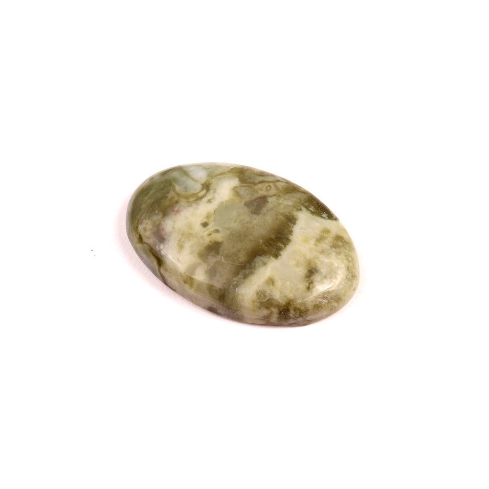 Epidote, který je hlavní složkou tohoto kabošonu, je často spojován s růstem a uzdravováním, a je považován za kámen, který umocňuje pozitivní změny a povzbuzuje k lepšímu pochopení vlastních potřeb. Jeho zelená barva je spojována s přírodou a přináší pocit klidu a rovnováhy, což je ideální pro ty, kdo hledají spojení se svou vnitřní silou. Jaspis pak dodává stabilitu a uzemnění, což činí z tohoto kabošonu mocný talisman pro vnitřní klid a sebejistotu.