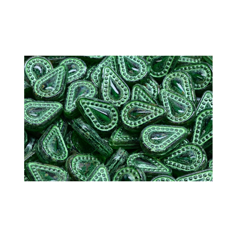 Elegantní tvar Filigree Tear Drop Beads v rozměru 14 x 10 mm vyniká jemným reliéfem, který napodobuje historickou filigránovou práci a dodává sklu nevídanou hloubku. Tato filigránová slzička je navržena tak, aby v ploše korálku docházelo k zajímavým lomům světla, což podtrhuje luxusní charakter každého vyrobeného šperku.