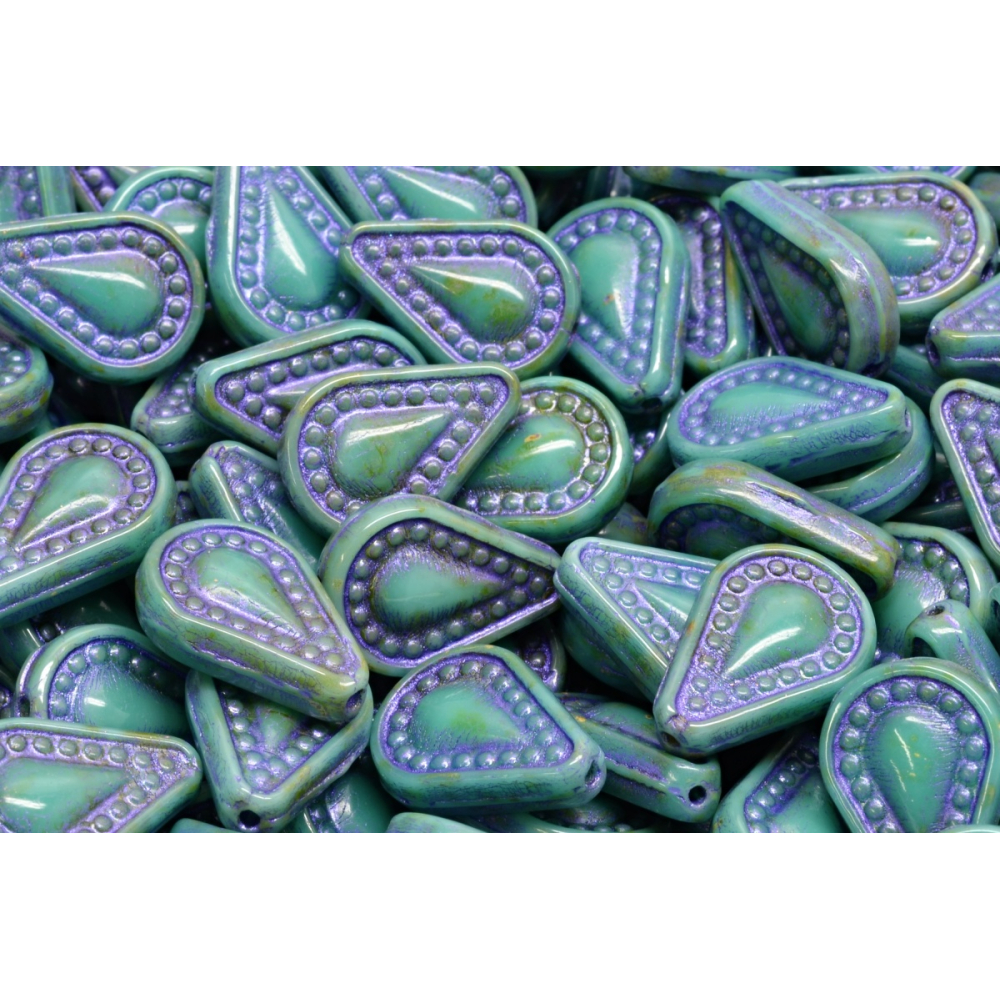 Kombinace s drobným rokajlem značky Preciosa ve velikostech 8/0 nebo 11/0 v metalických tónech vytvoří harmonický a profesionálně vyhlížející celek. Filigree Tear Drop Beads se skvěle hodí pro pokročilé techniky beadweavingu, drátování i pro jednoduché, ale efektní navlékání na bižuterní komponenty. Tmavě modrý podklad korálku nádherně vynikne zejména v kontrastu s měděnými nebo starostříbrnými prvky.