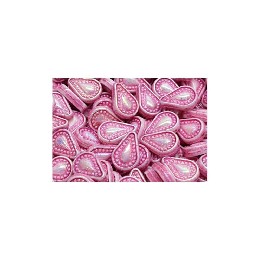 Růžová barva v jemném odstínu a precizní zpracování definují tyto Filigree Tear Drop Beads, které pocházejí z dílny rodinného podniku Rutkovský. Každá skleněná slzička vzniká tradičním postupem ručního lisování, čímž navazuje na staletou historii českého sklářství. Výsledkem je unikátní korálek s detailním reliéfem, jenž připomíná jemnost historických filigránových šperků a dodává projektům nádech nostalgie.