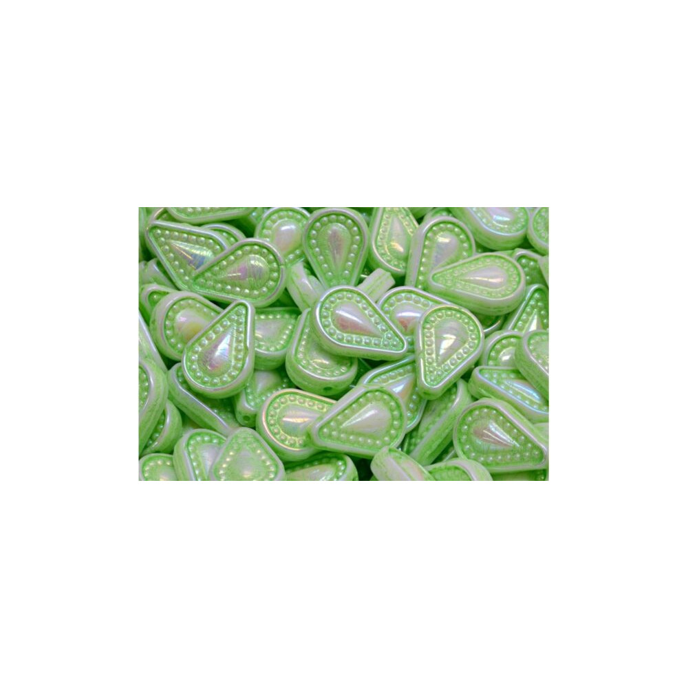 Zelená barva s jemným dekorativním finišem zdobí tyto Filigree Tear Drop Beads. Tyto ručně lisované korálky pocházejí z rodinné tradice firmy Rutkovský, která představuje špičku v oboru tradičního českého sklářství. Každý kus nese stopy precizního řemesla a unikátní vizuální hloubku, která vynikne v každém autorském šperku.
