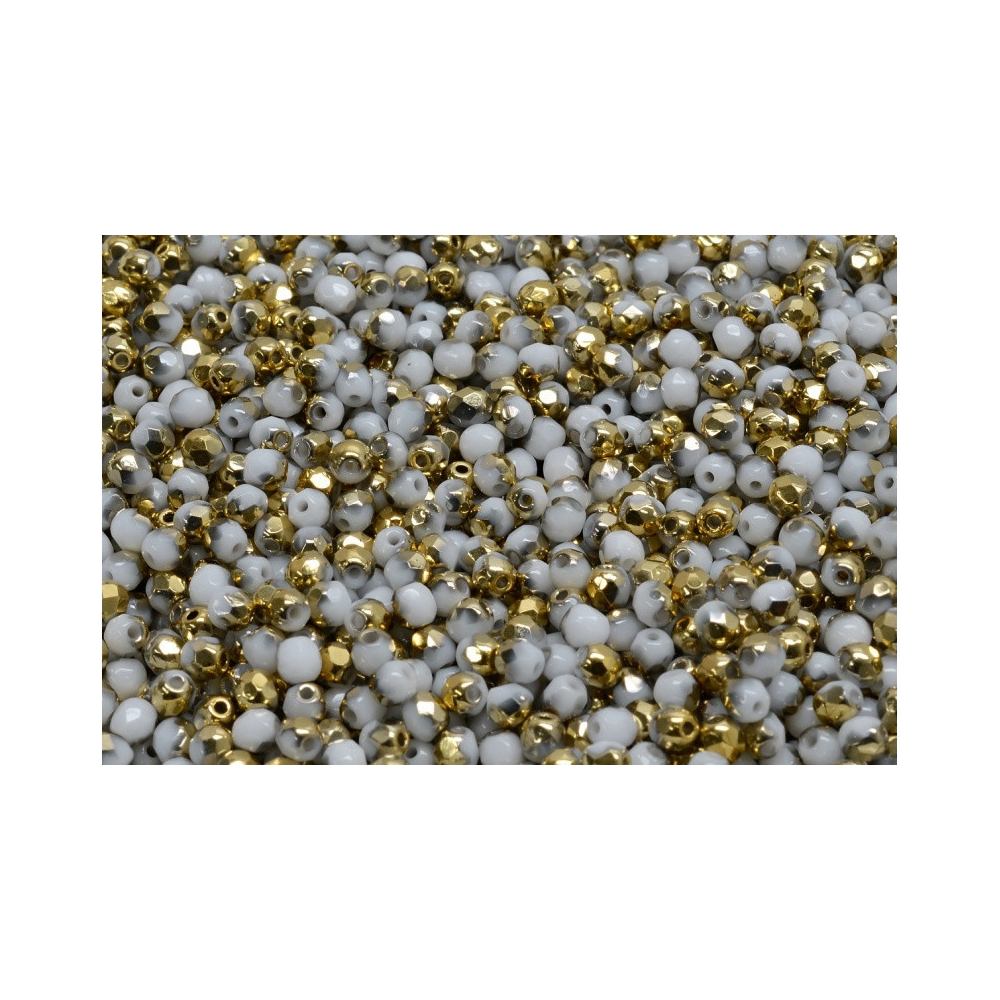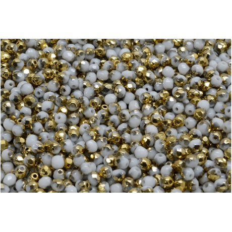 Korálky ohňovky (broušené) 2 mm White Half Coat Metallic Gold 03000-26441