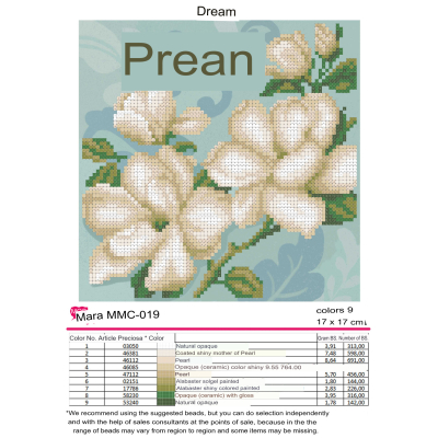Plátno pro vyšívání korálky Velikost cca 17 x 17 cm Počet barev: 13 Vzor: Květiny a stromy...