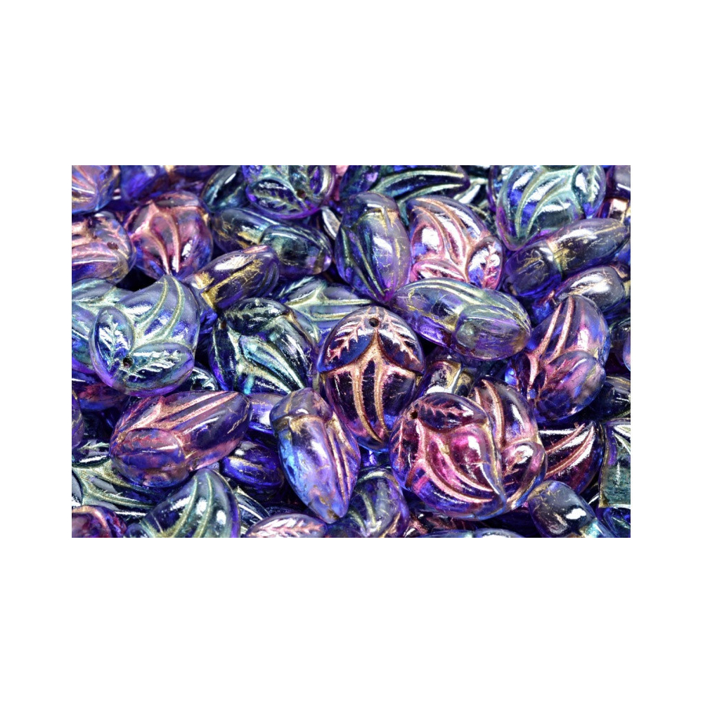 České mačkané korálky Flower Bud Beads 15x10 mm - korálek ve tvaru poupěte. Každý korálek je jako malý poklad, který nese krásu a něhu poupěte, zachycenou v křišťálovém skle.