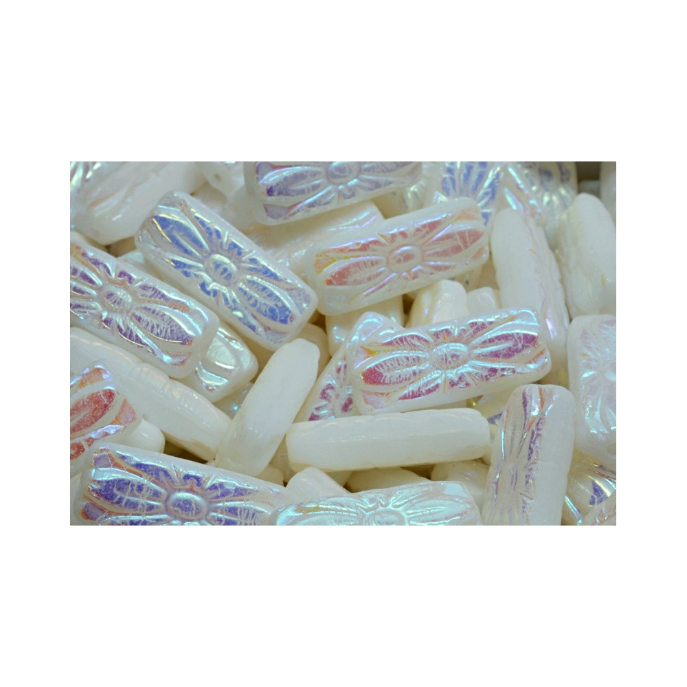 Flower Rectangle Beads White Alabaster Opal AB 02010-28703