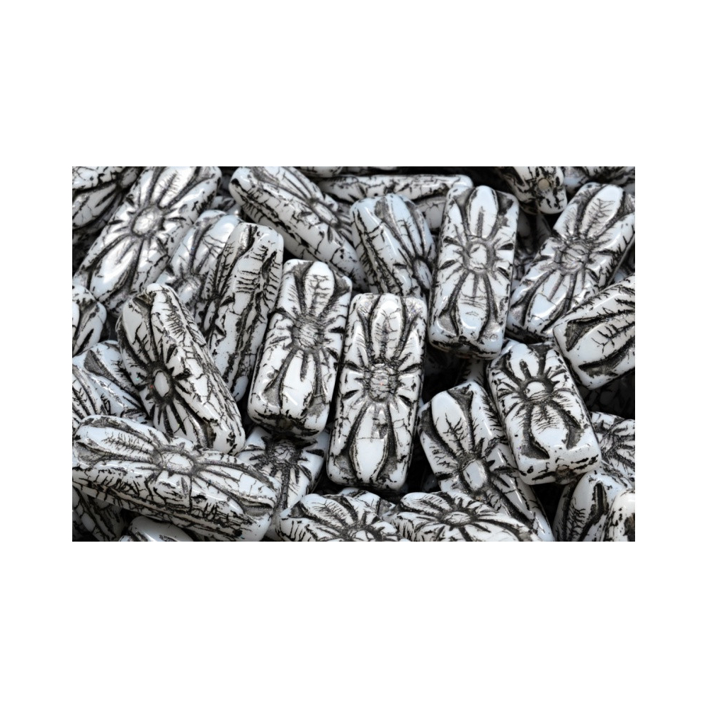 Pokud hledáte kvalitní české korálky s osobitým charakterem, tyto bílo-černé obdélníky s motivem květin vnesou do vaší tvorby prvek originality. Skvěle doplňují jak kovové komponenty v barvě starostříbra, tak i moderní nerezovou ocel nebo antracitové povrchy.