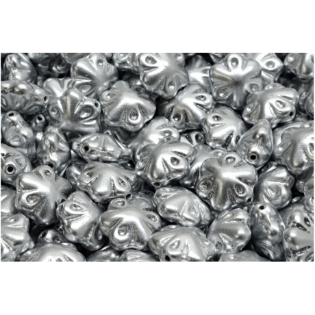 Stříbřité odlesky připomínající ranní jinovatku na rozkvetlé louce přinášejí do vaší tvorby nádech nostalgie i moderního luxusu. Tyto skleněné korálky Folklorní květiny o rozměru 11 x 11 mm vynikají precizním reliéfem, který věrně kopíruje tradiční lidové vzory. Jejich stříbrná barva s jemným kovovým finišem dodává každému autorskému šperku hloubku a sofistikovaný vzhled, který vynikne zejména v kombinaci s tmavými odstíny rokajlu.