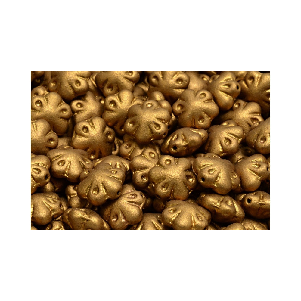 Zlatavé odlesky skleněného povrchu vdechují těmto mačkaným korálkům duši Jizerských hor, kde se v dílnách firmy Rutkovsky rodí tyto precizně tvarované Folklore Flower Beads 11 x 11 mm. Každá zlatá kytička v sobě nese odkaz tradičního sklářství a je ideální volbou pro tvorbu etnických či folklorních doplňků, kde se skvěle doplňují se skleněné kuličky tvořícími středy květů. Balení obsahuje 6 ks těchto detailně zpracovaných prvků, které díky svému metalickému finiši dodají každému autorskému šperku punc luxusu a historie.